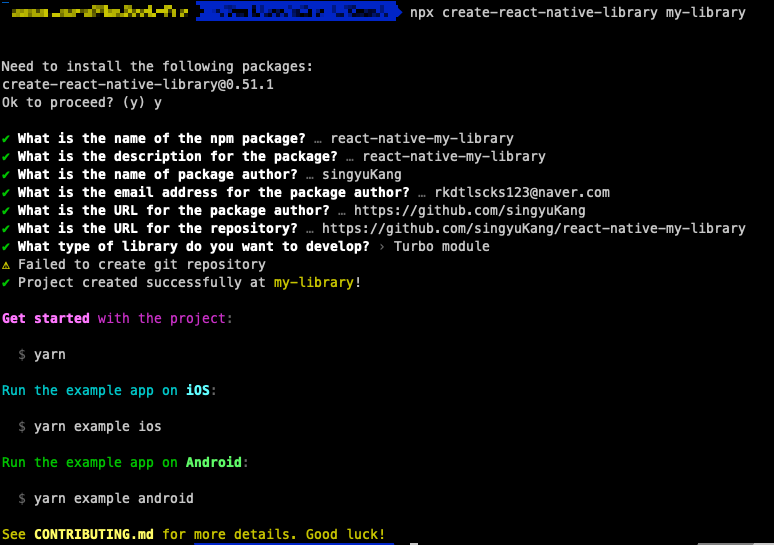 npx create-react-native-library my-library